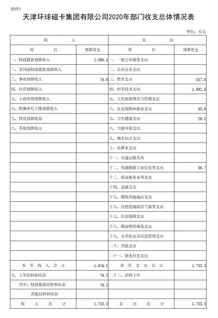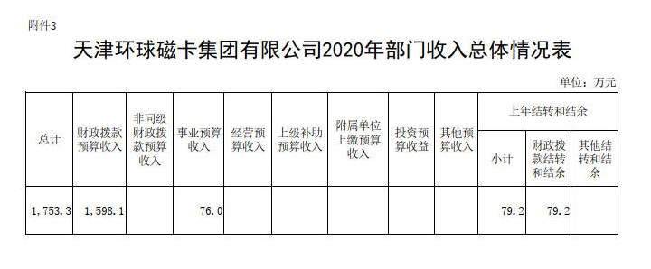 天津环球磁卡集团有限公司内设11个职能部室;下辖4个预算单位。