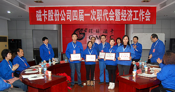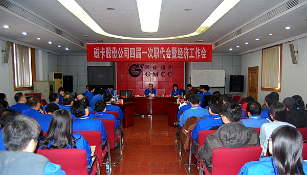 磁卡股份公司第四届一次职代会暨经济工作会于2月5日在多功能厅召开,传达贯彻集团首届六次职代会暨经济、党建工作会精神,部署2015年各项工作,续签《集体合同》。党委书记、董事长郭锴讲话,工会主席李梅主持会议