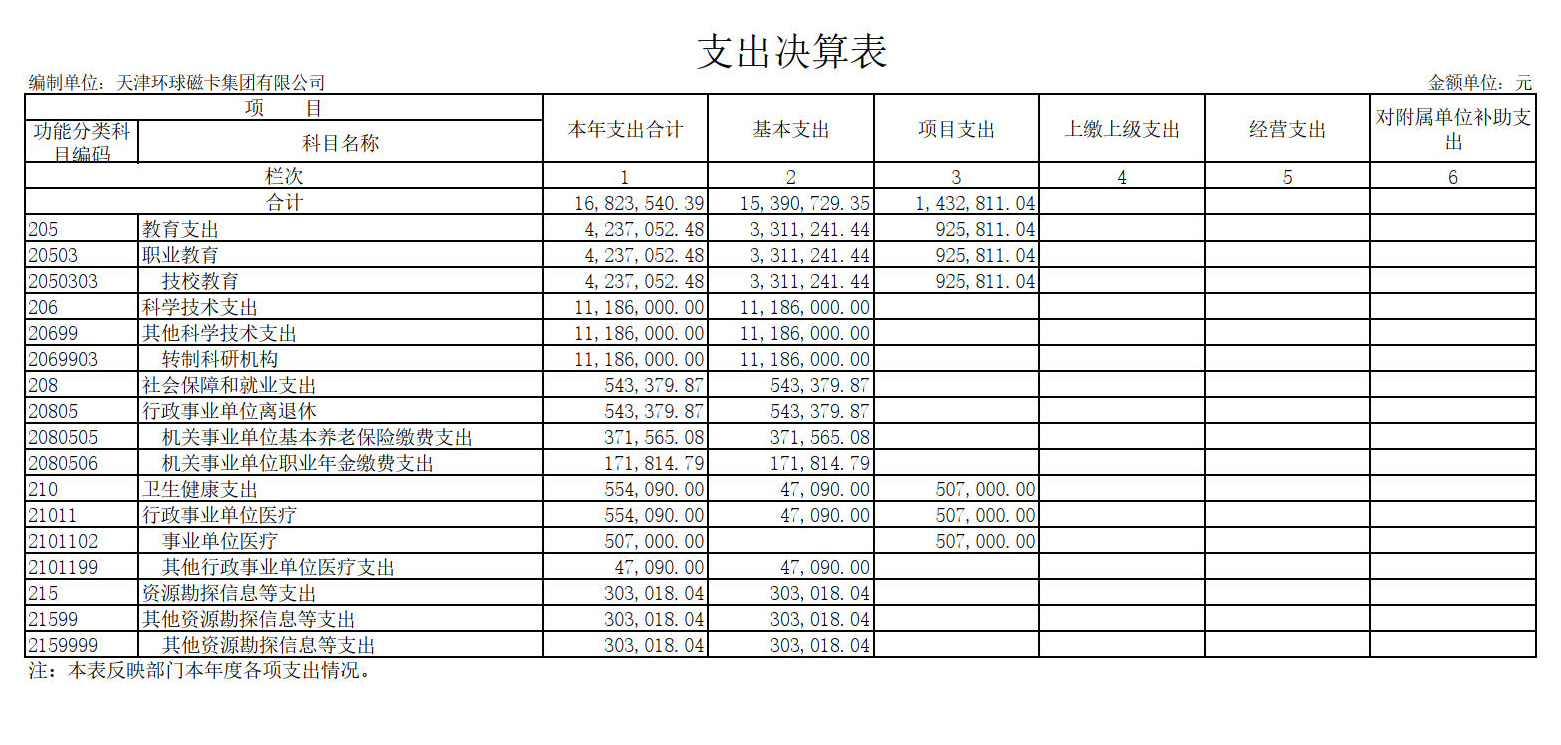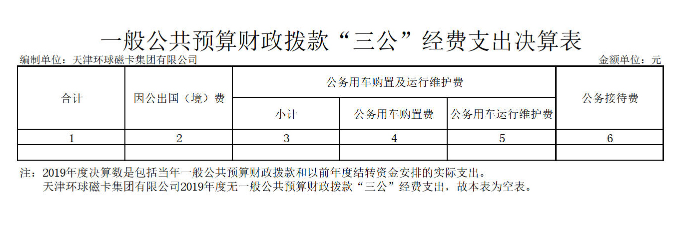 2.天津环球磁卡集团有限公司2019年度一般公共预算财政拨款“三公”经费支出决算表为空表。