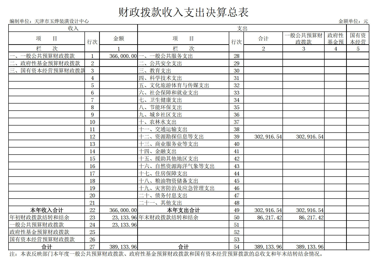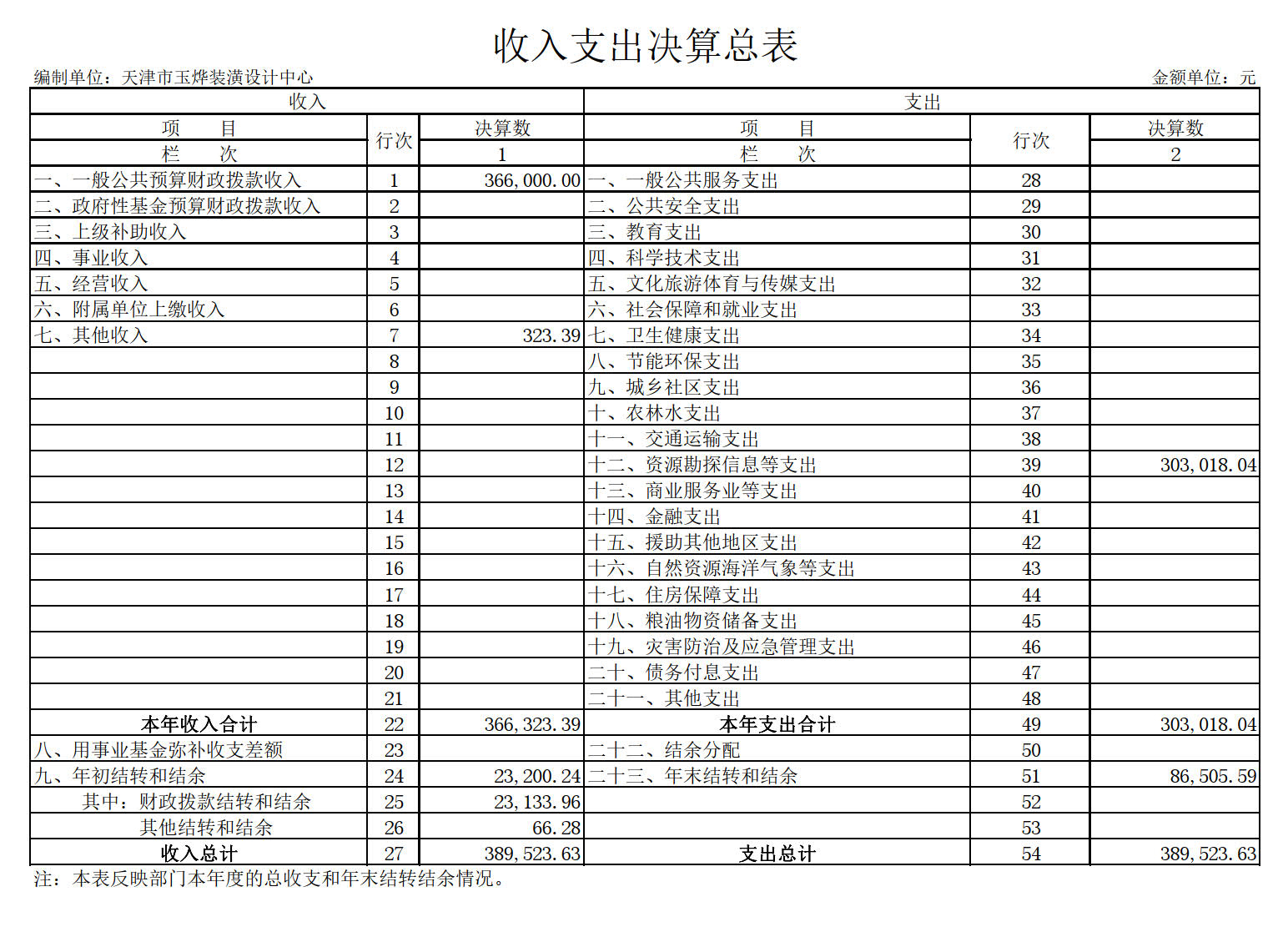 天津市玉烨装潢设计中心2019年度无机关运行经费。