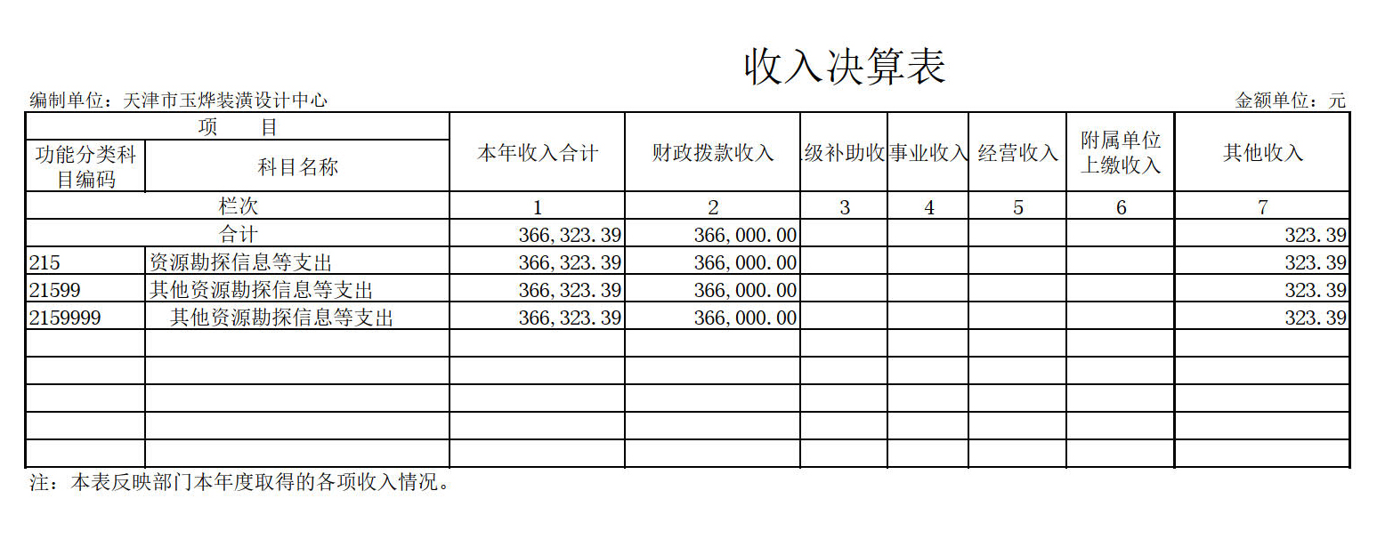 2.天津市玉烨装潢设计中心2019年度一般公共预算财政拨款“三公”经费支出决算表为空表。