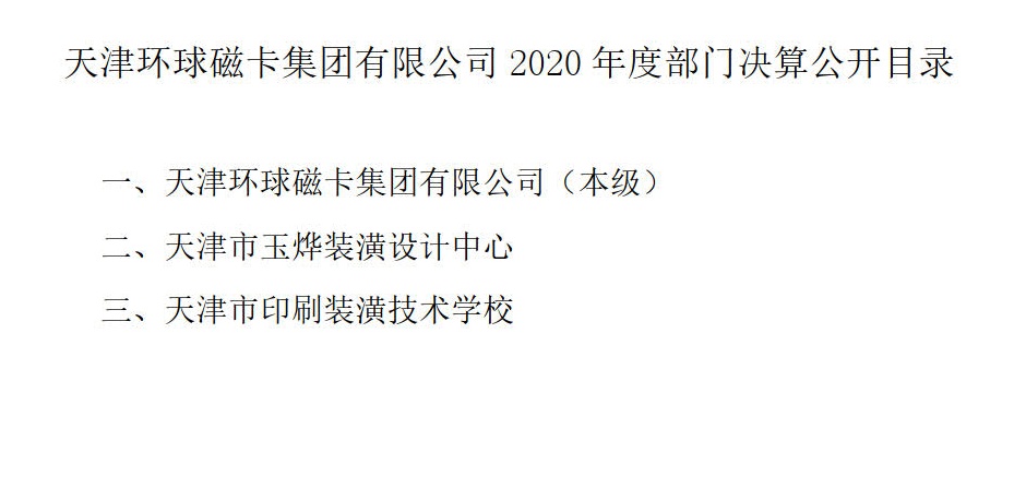 天津环球磁卡集团有限公司2020年度部门决算公开目录