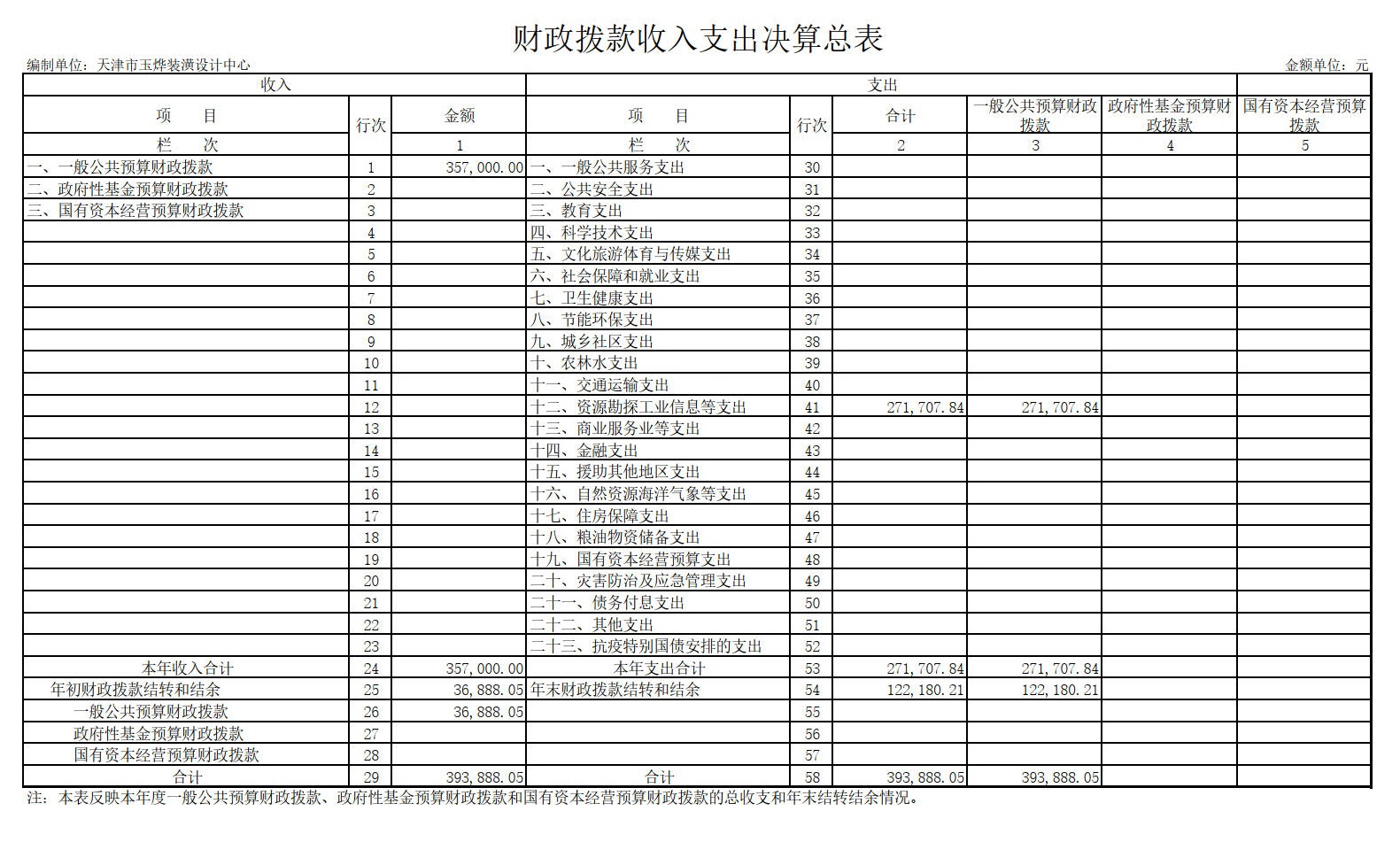 天津市玉烨装潢设计中心2020年度财政拨款收入、支出决算总计393888.05元,与2019年决算相比增加4754.09元,主要原因是财政拨款结转和结余增加。