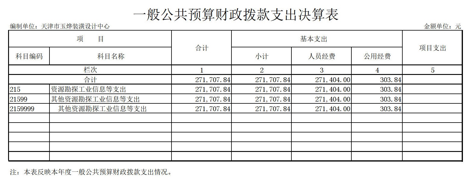 天津市玉烨装潢设计中心2020年度无机关运行经费。