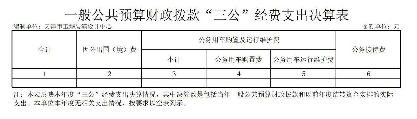 1.天津市玉烨装潢设计中心2020年度一般公共预算财政拨款“三公”经费支出决算表为空表。