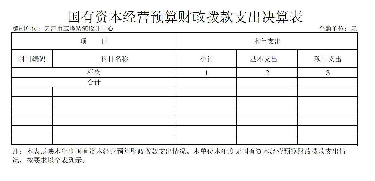 3.天津市玉烨装潢设计中心2020年度国有资本经营预算财政拨款支出决算表为空表。