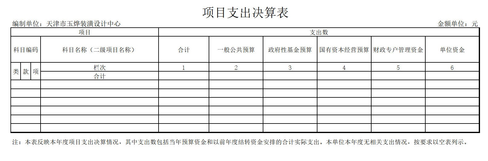 4.天津市玉烨装潢设计中心2020年度项目支出决算表为空表。