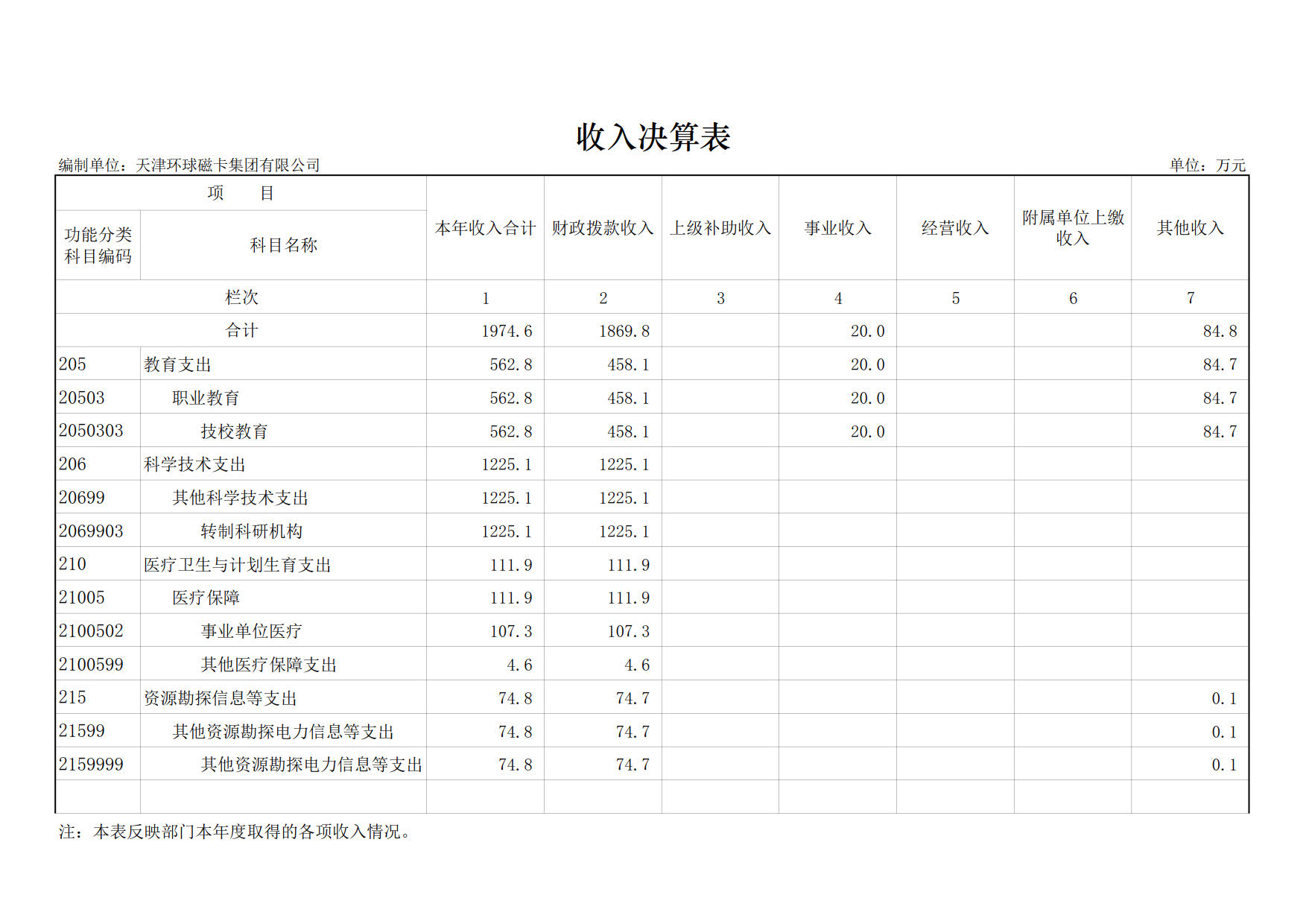 一、关于天津环球磁卡集团有限公司2016年度部门决算收入情况说明