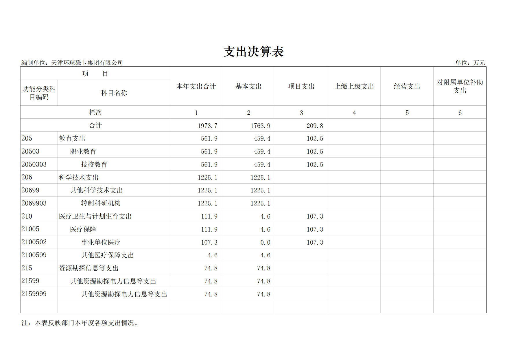 天津环球磁卡集团有限公司2016年度部门决算支出总计1974.6万元,与2015年决算相比增加537.3万元,其中:基本支出1763.9万元,占89.3%;项目支出209.8万元,占10.6%。