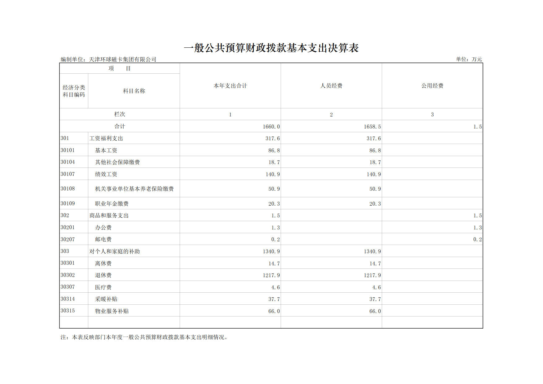 天津环球磁卡集团有限公司2016年度部门决算一般公共预算财政拨款基本支出总计1660.0万元,具体情况如下: