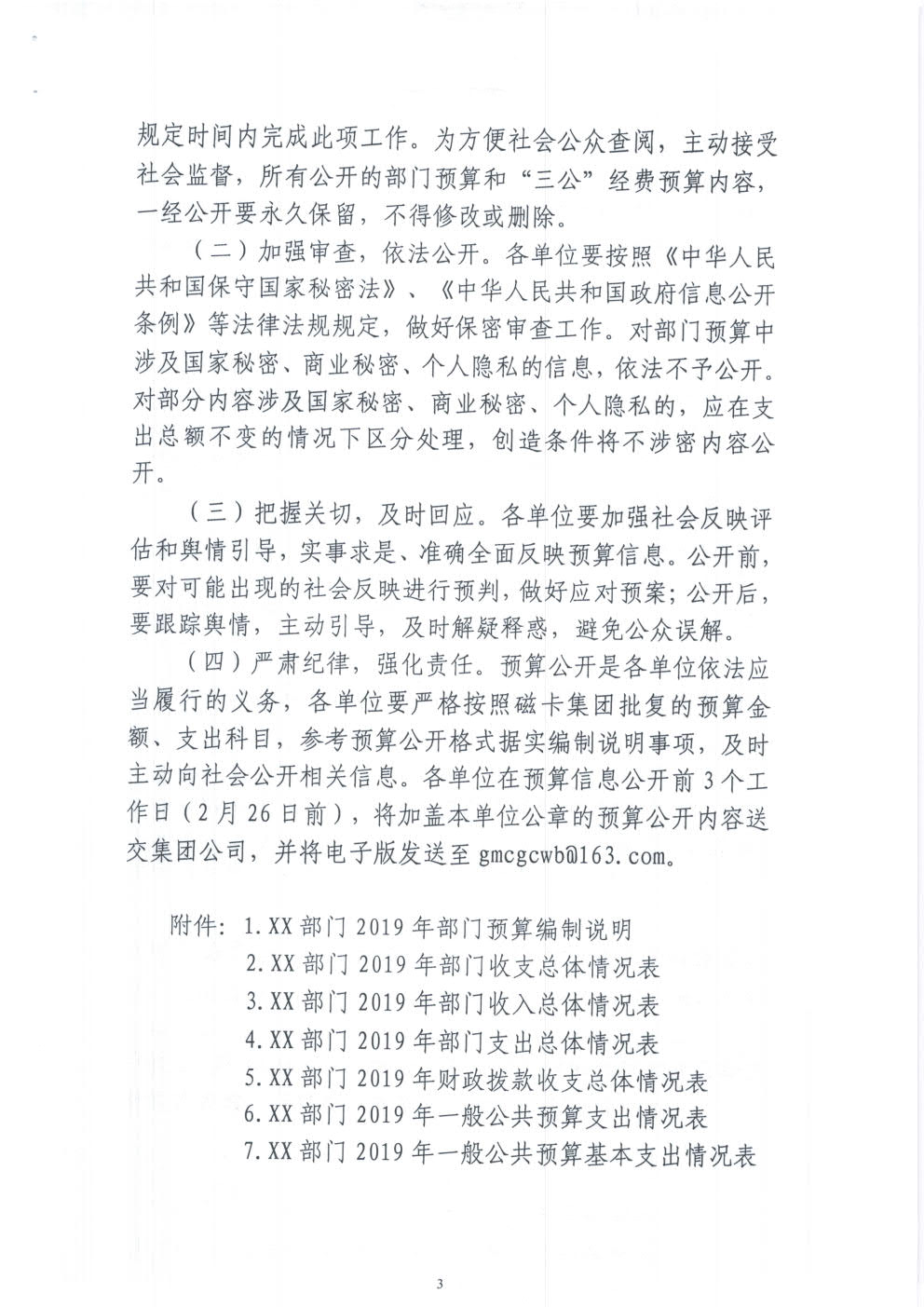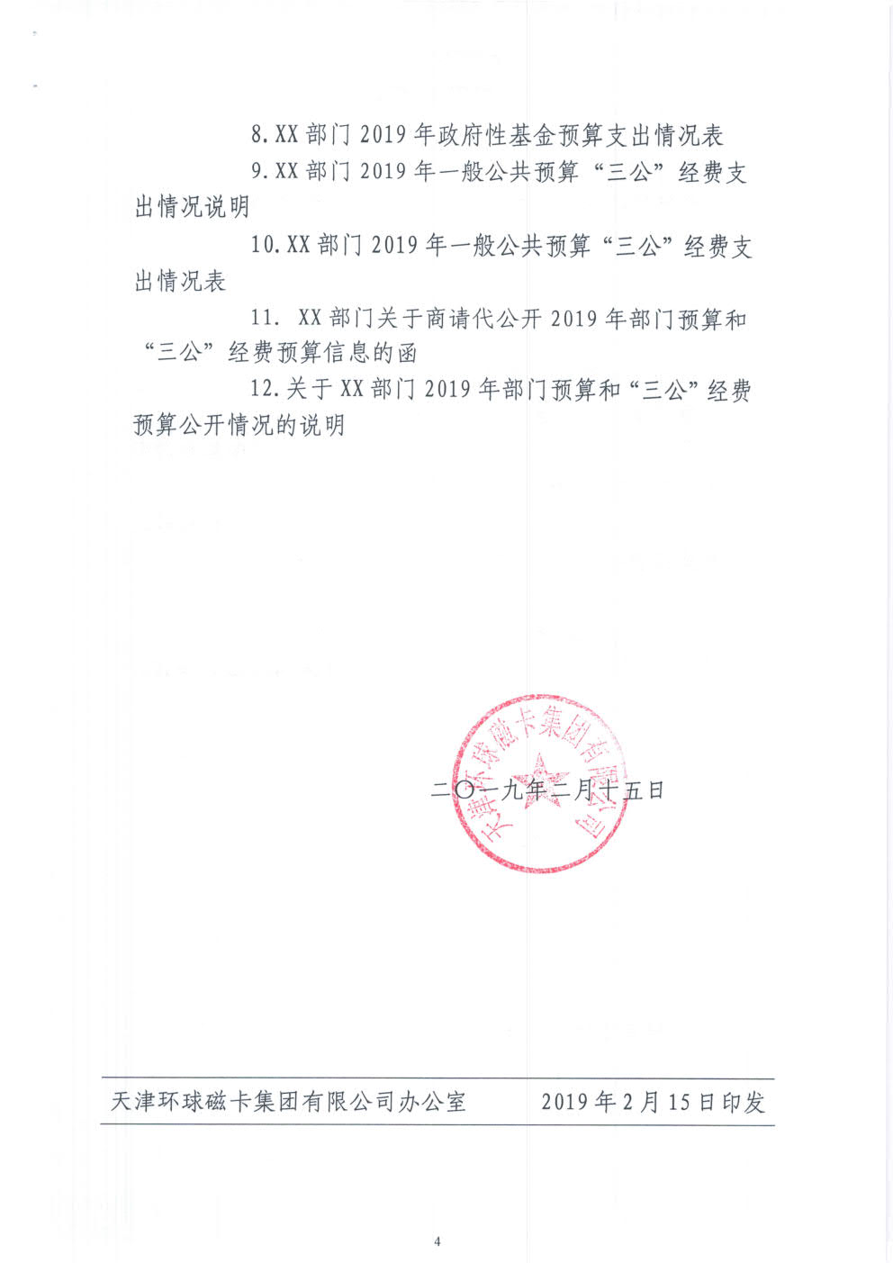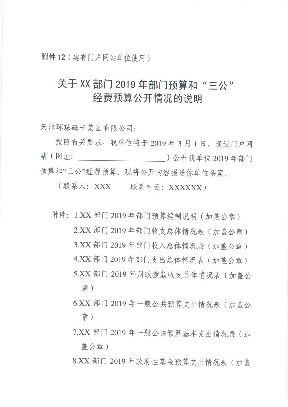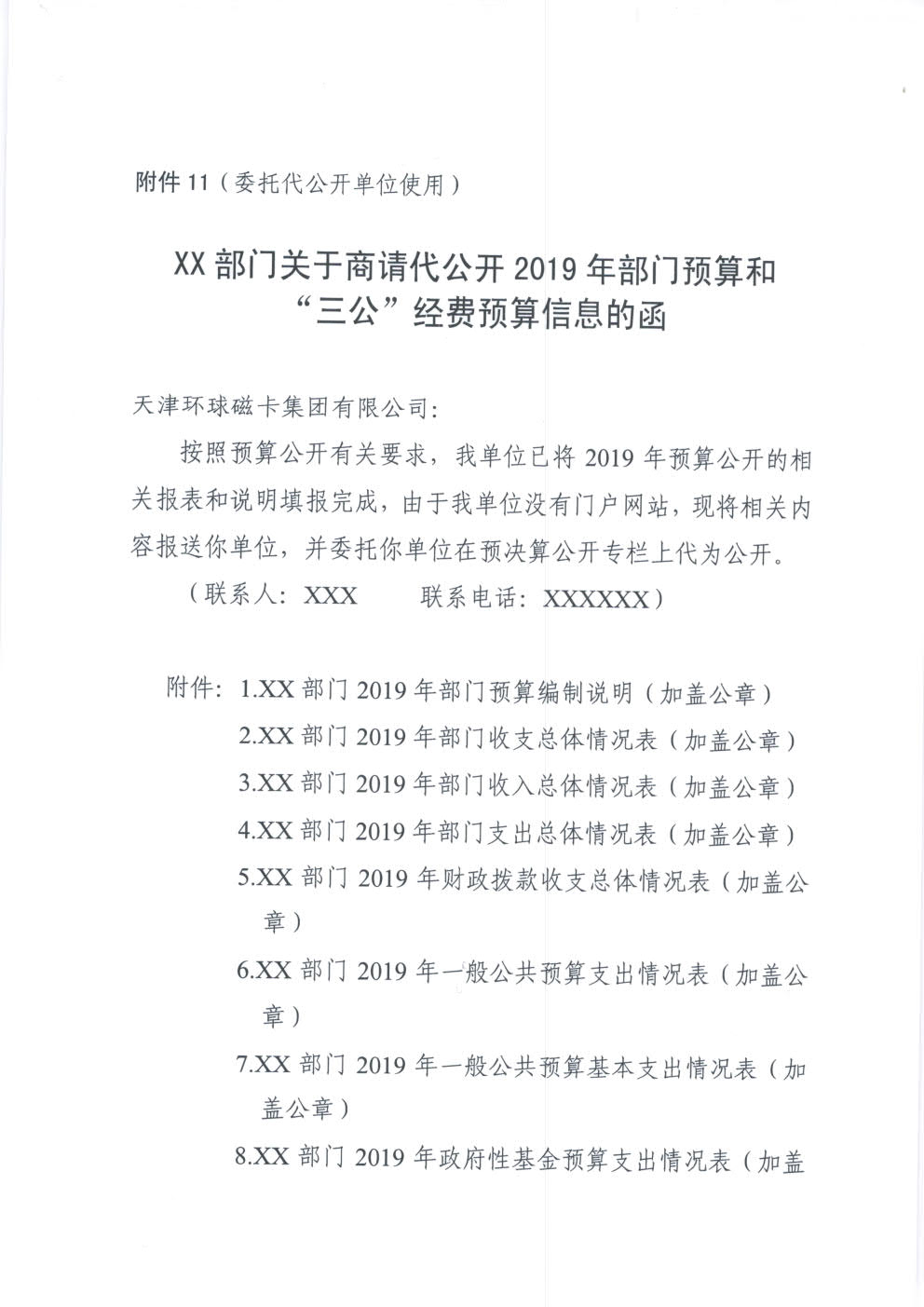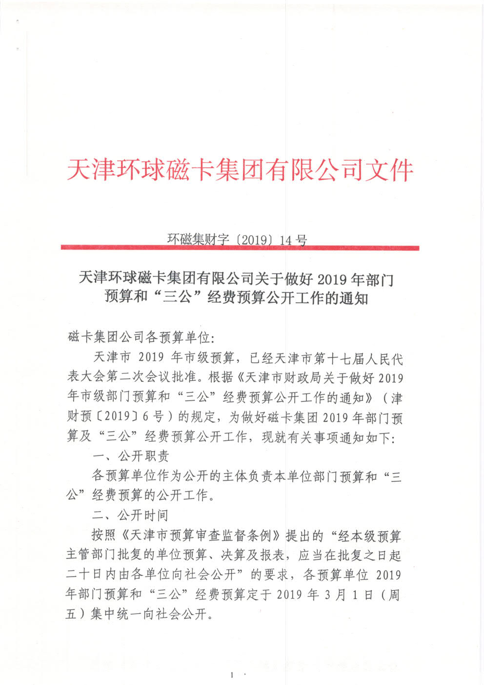 天津环球磁卡集团有限公司关于做好2019年部门预算和“三公”经费预算公开工作的通知