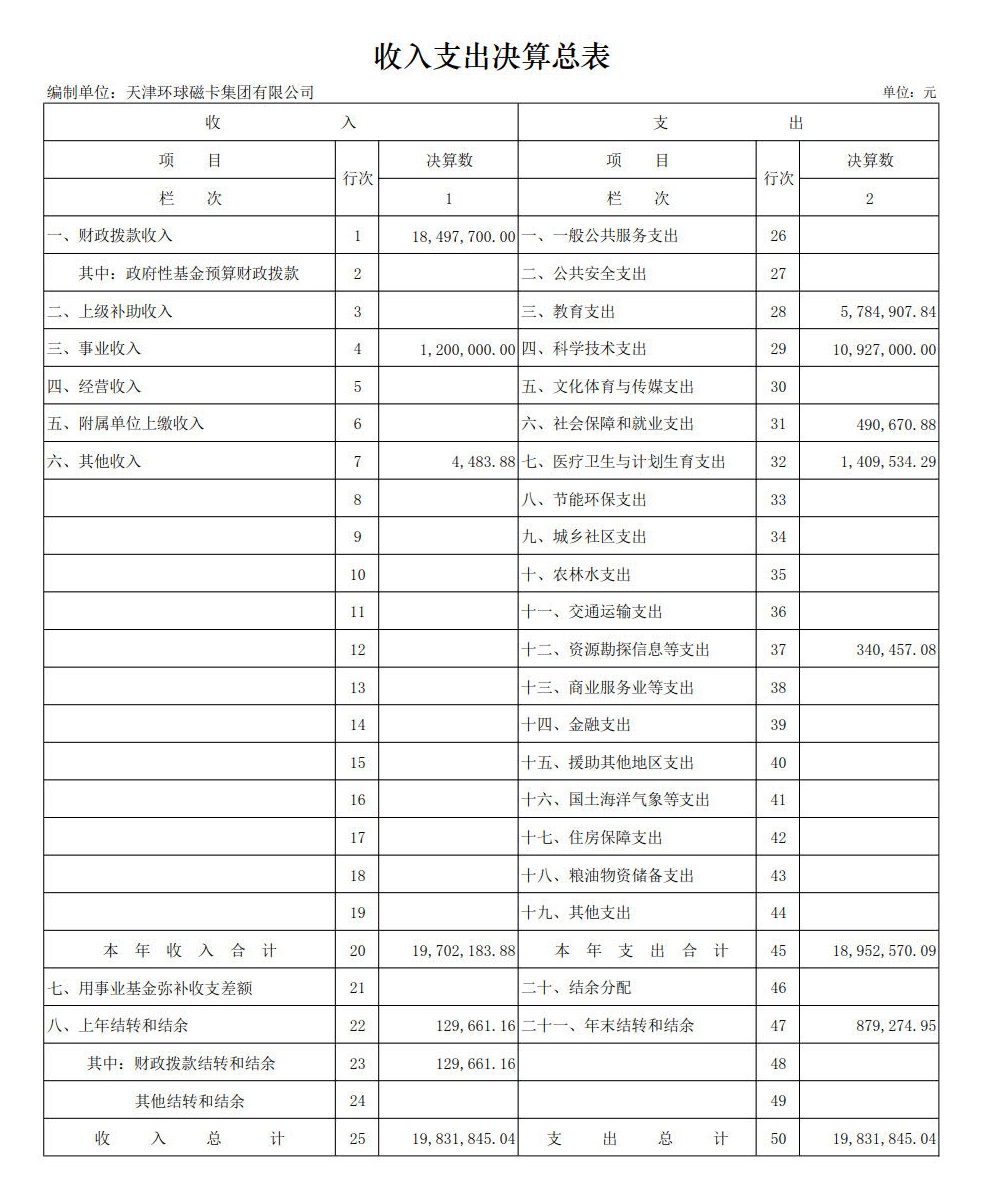 根据上述职责,天津环球磁卡集团有限公司内设11个职能部室,下辖4个预算单位。