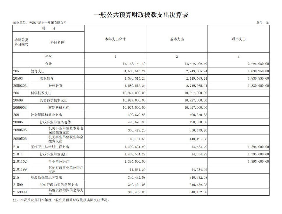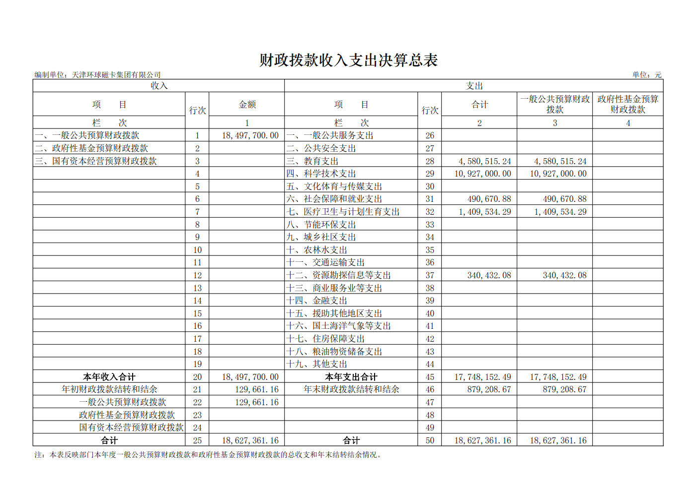 天津环球磁卡集团有限公司2018年度一般公共预算财政拨款