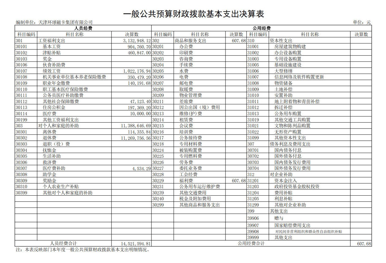 天津环球磁卡集团有限公司2018年度部门决算支出总计19831845.04元,与2017年决算相比减少2928507.97元,其中:基本支出15726620.09元,占79.30%;项目支出3225950.00元,占16.27%。