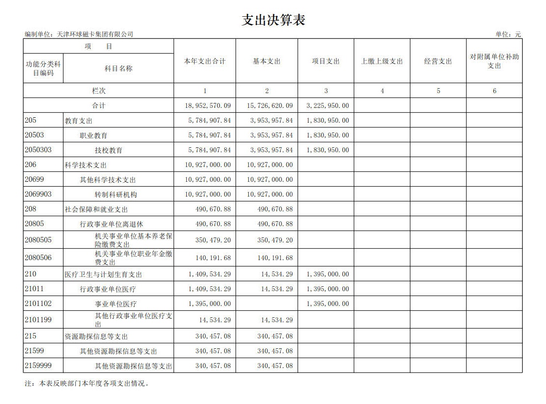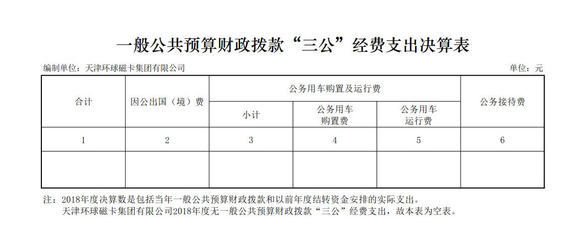 天津环球磁卡集团有限公司2018年度无机关运行经费。