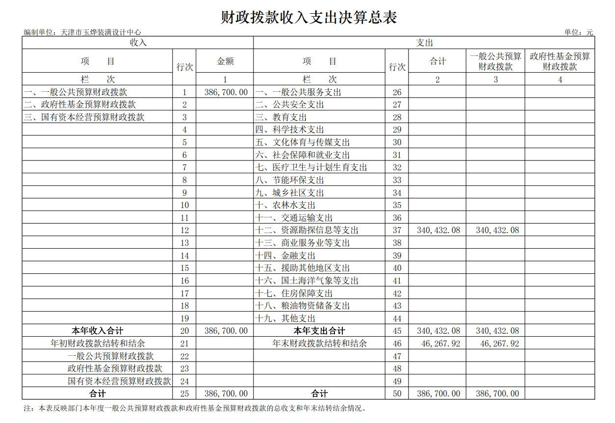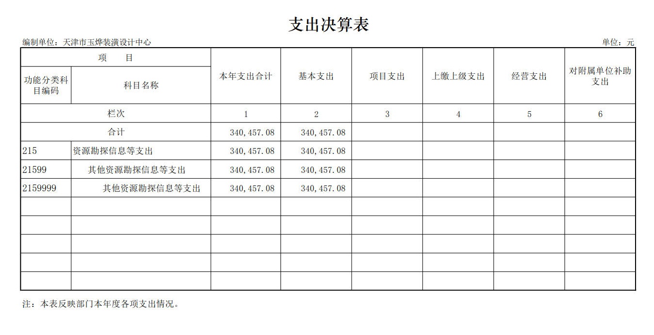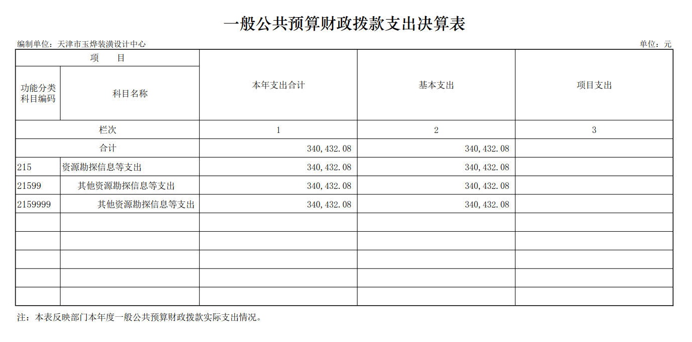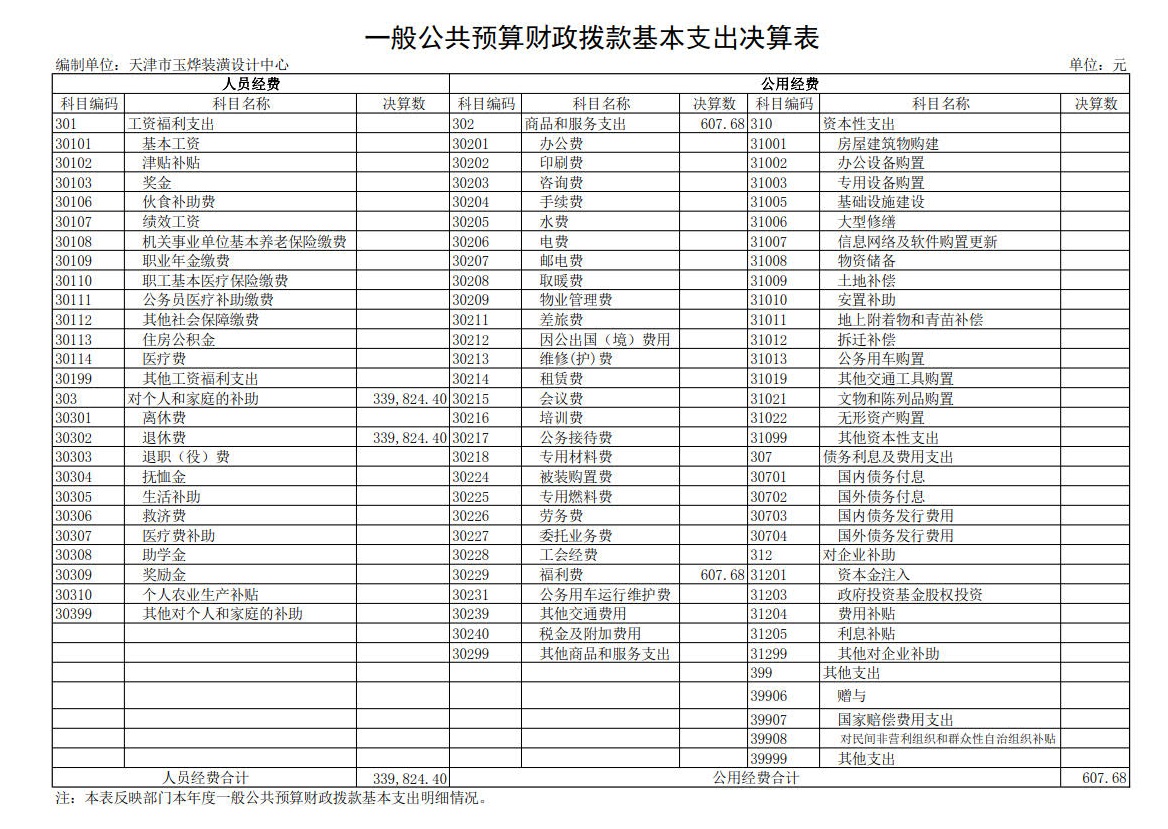 天津市玉烨装潢设计中心主要负责本部门退休人员管理工作,财政拨款用于转制前退休人员基本支出。