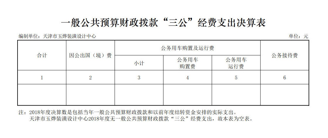 天津市玉烨装潢设计中心2018年度无机关运行经费。